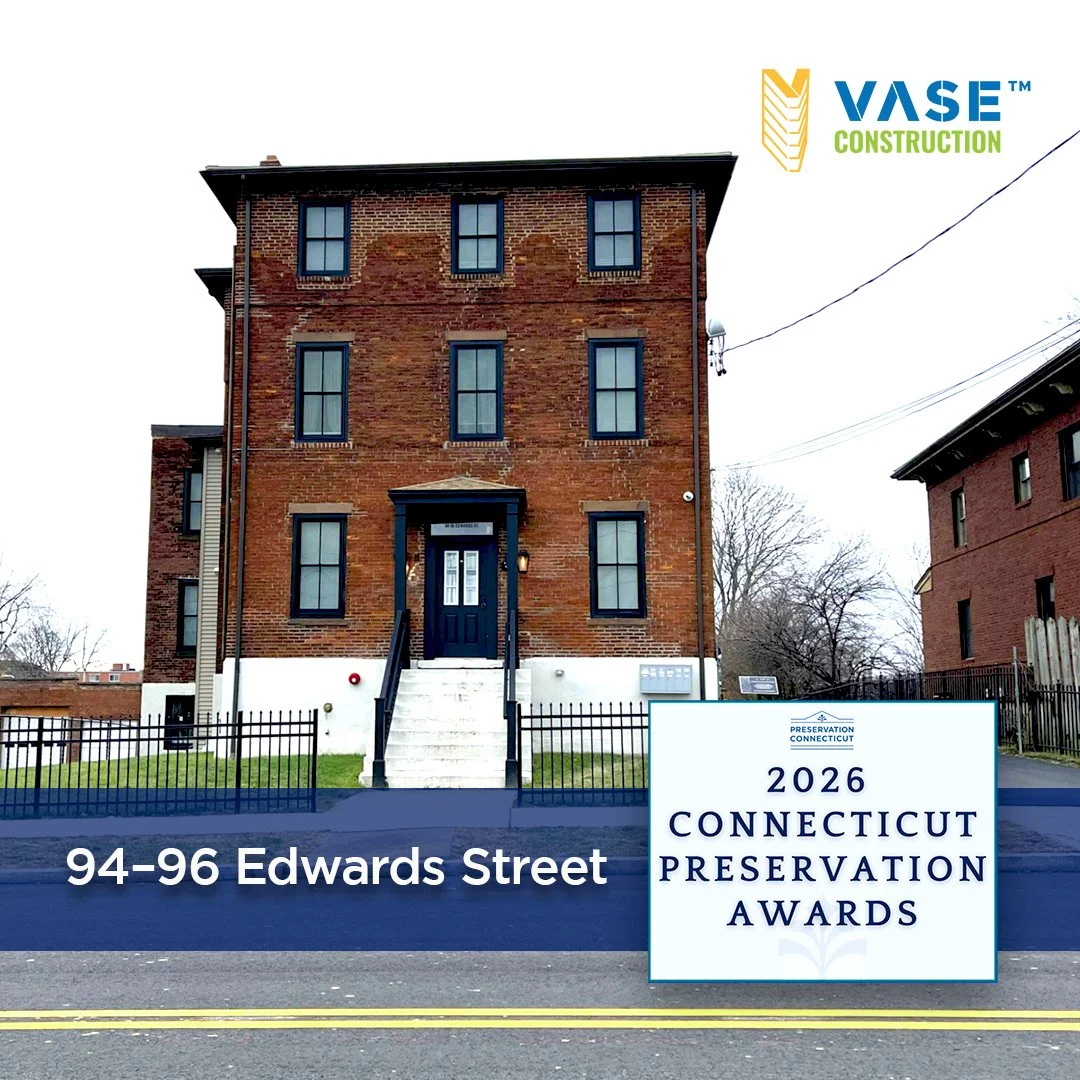 HARTFORD, CT – VASE Construction is proud to announce that its rehabilitation project at 94–96 Edwards Street has been honored with a 2026 Award of Merit from Preservation Connecticut. The project was recognized for its successful transformation of a long-vacant 1860s property into high-quality housing, proving that historic preservation can be economically viable, socially impactful, and culturally respectful.